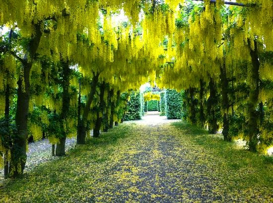 Sometimes, though, they have other purposes. In Heirs of the Body, the 21st Daisy Dalrymple mystery (just reissued by Minotaur in trade paperback), I use a pleached walk of laburnam to suggest the threat of poisoning. The seeds are deadly. In fact, I use the walk for a different purpose, and another plant is used later in the book to poison one of my characters.